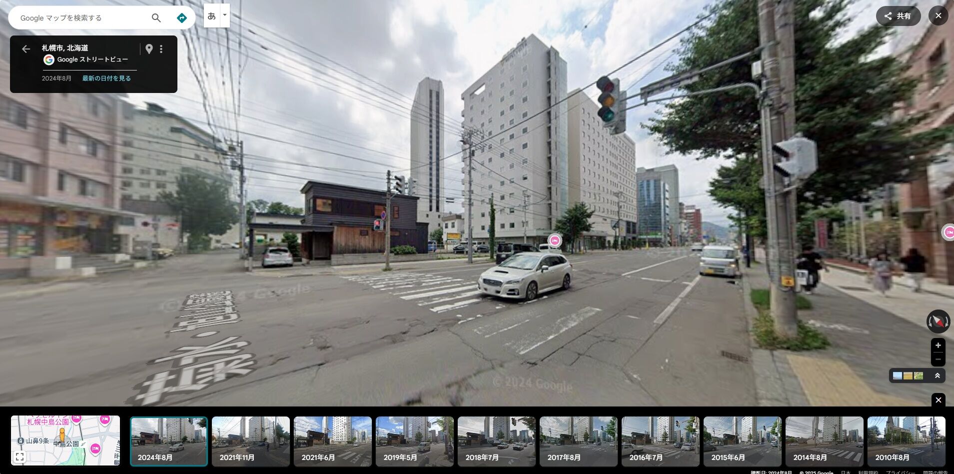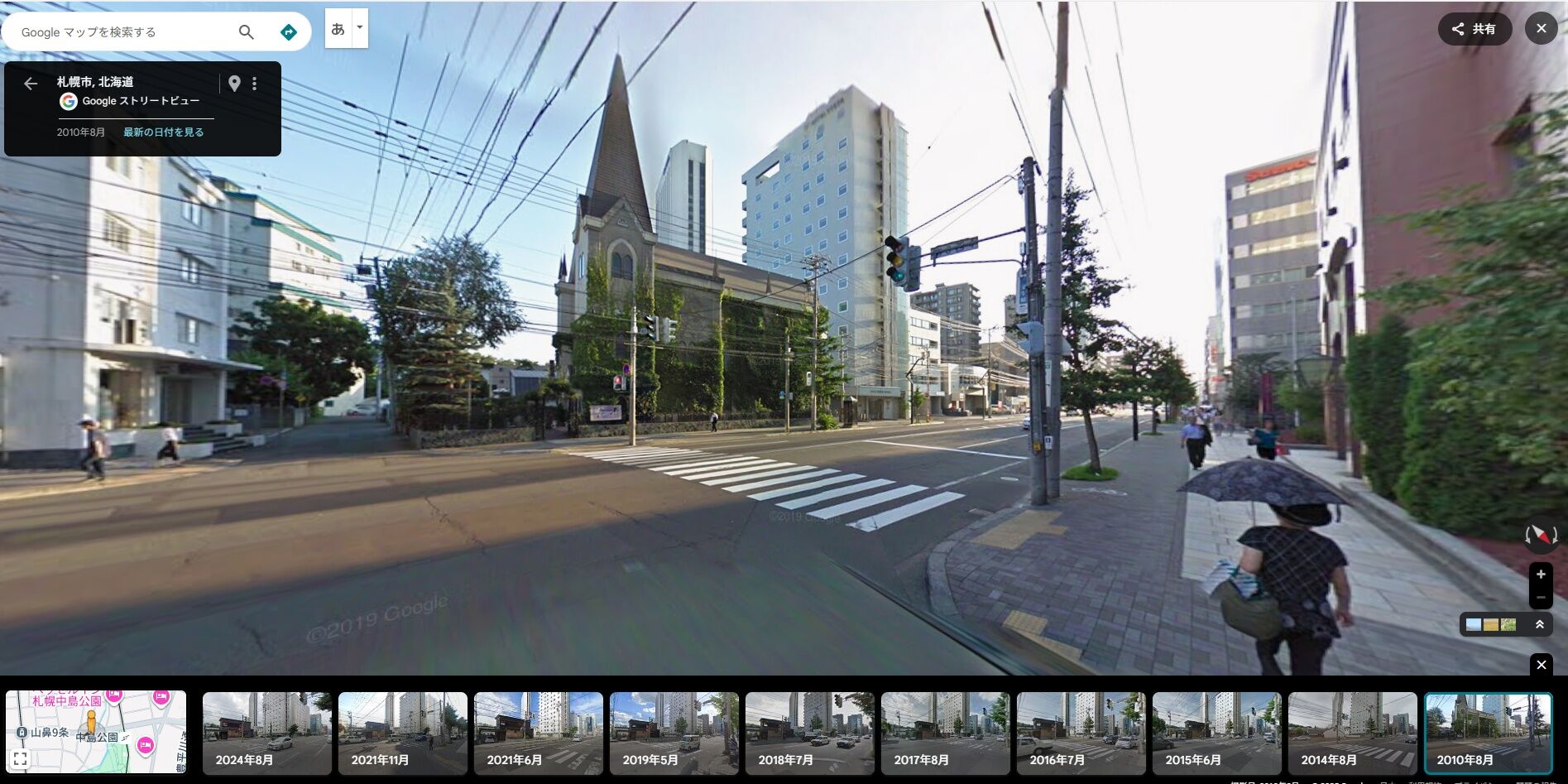 Googleストリートビューで中島公園にあるホテルVISTAを見たら周りの景色は同じだけど、教会が別の建物に変わっていた💦