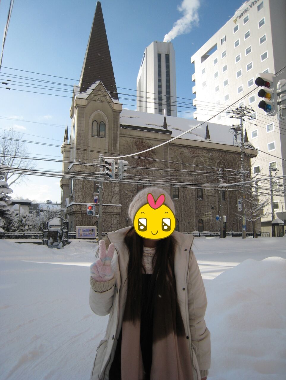 写真を見てHOTEL VISTAってあって、近くに教会がある写真で真冬の交差点で写した写真なんだけど、雪がメチャ積もっていて大きな公園で雪の多さにビックリした思い出があって、多分だけど中島公園なんだよね。