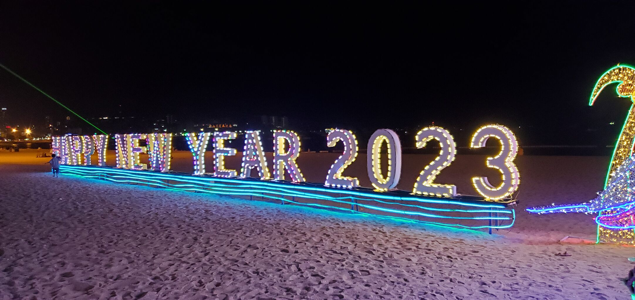 ホテルの近くのビーチではカウントダウンのイベントが年末にあったみたいで、電飾が非常にきれいだった。