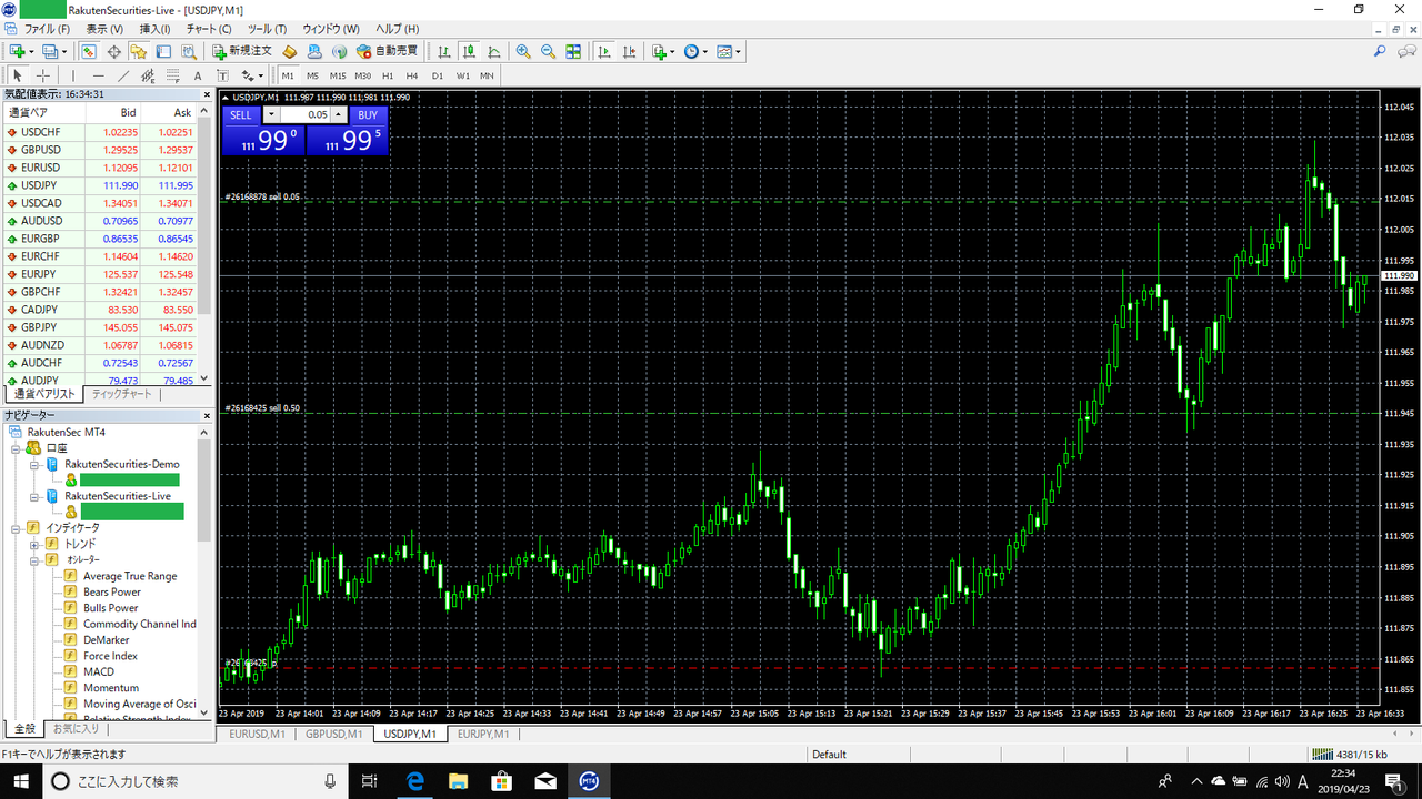 ...で、MT4の使い方を理解しながらデモ口座で1日色々と試した後で、実際に今日からリアル口座に入金して始めたんだけど、ハッキリ言ってまだ操作方法に馴染めてない、そんな感じだ。