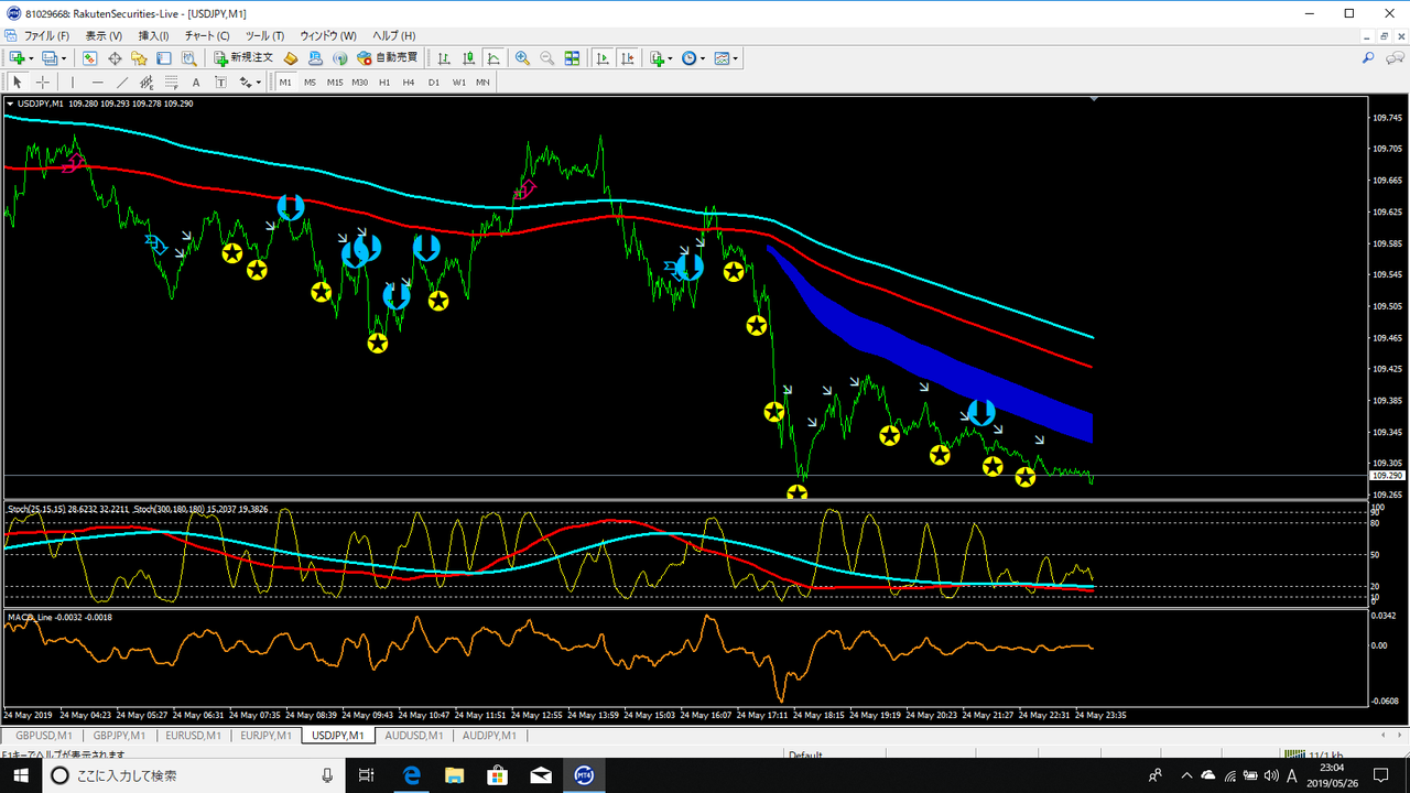 ゲイでFXのトレーダーとしても活躍している「もってぃー」さんが作られた「ゲイスキャFX」と言うサインツールを税込みで4万円ぐらいで購入して、早いもので2週間ほど使っている。このツールは相場をATMにして、8割ぐらいの勝率との紹介だったんだけど、使ってみると確かに勝てるタイミングの時(売り買いのサインがしっかり効いている時)と全く逆行してしまう時がある、一種の癖みたいなものが段々と解ってきたんだけどね。